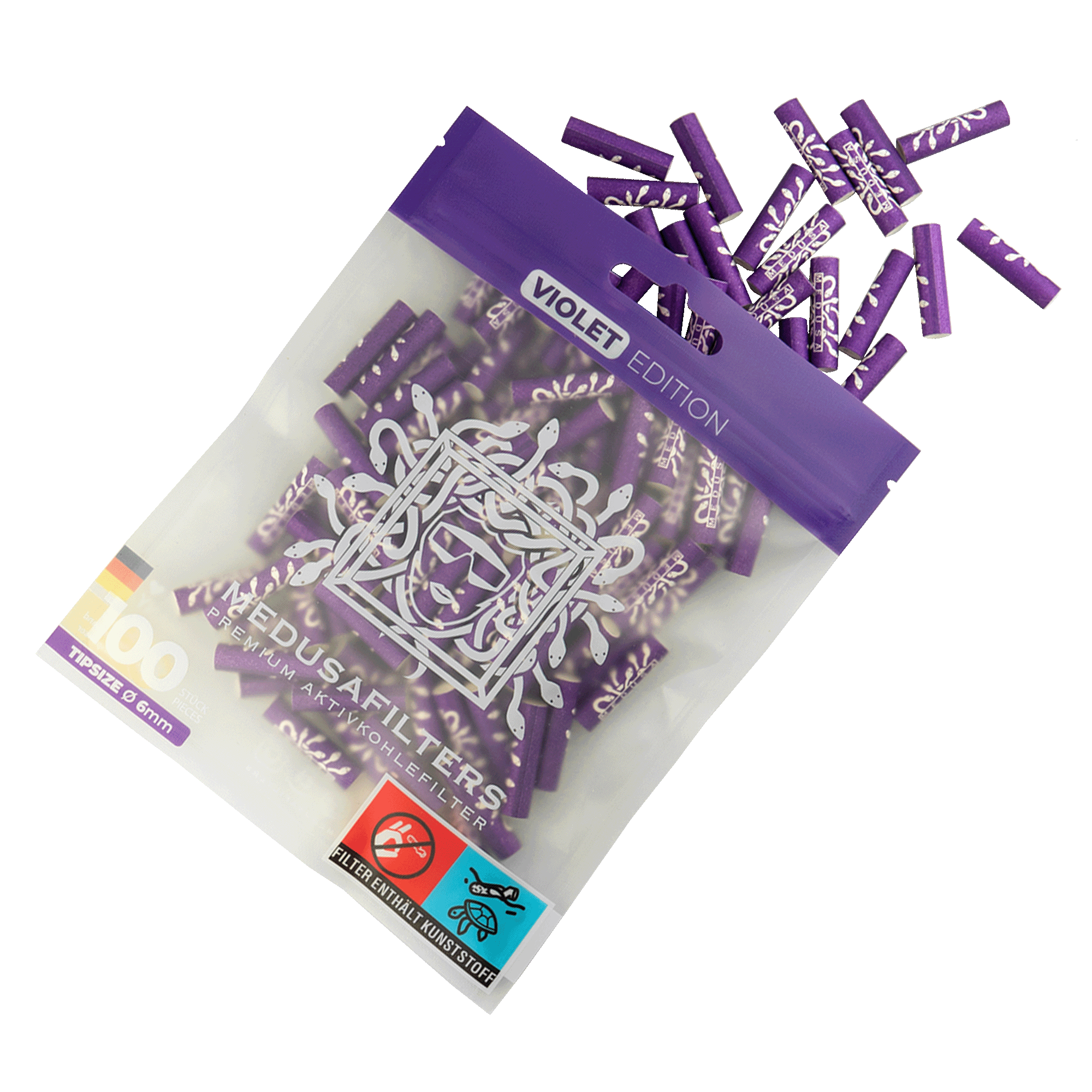 Home Articoli per fumatori Filtri carboni attivi MEDUSA® VIOLA carbon active tips 100 pezzi – biodegradabili