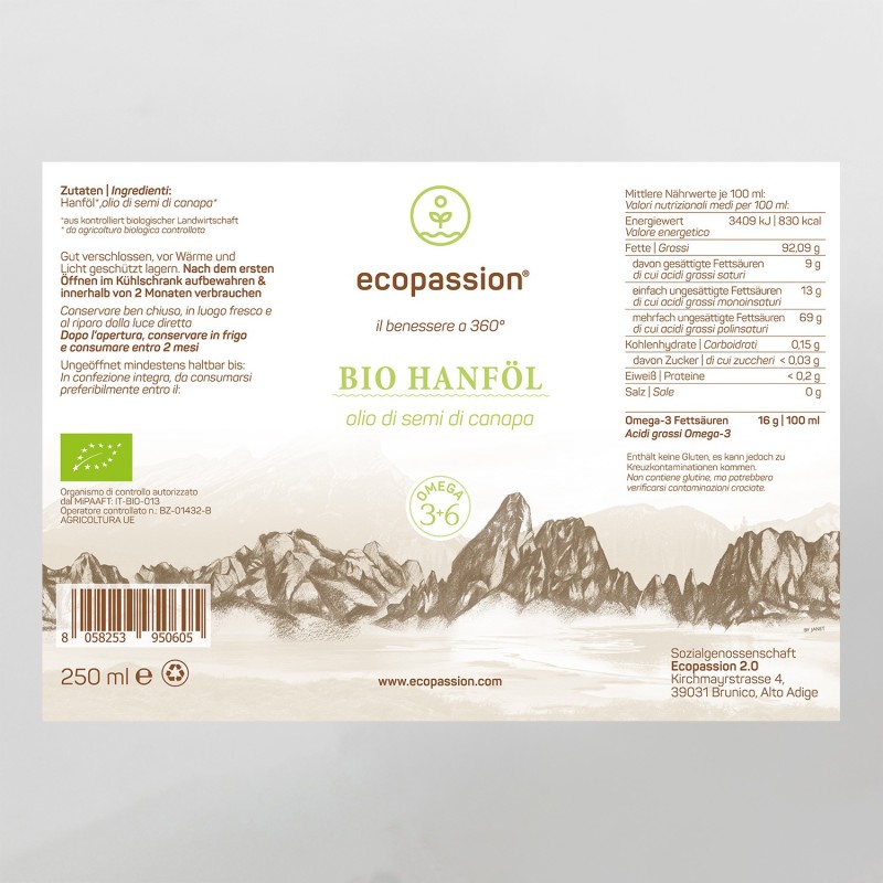 Home Alimenti Olio di Canapa OLIO DI CANAPA alimentare Ecopassion 250 ml