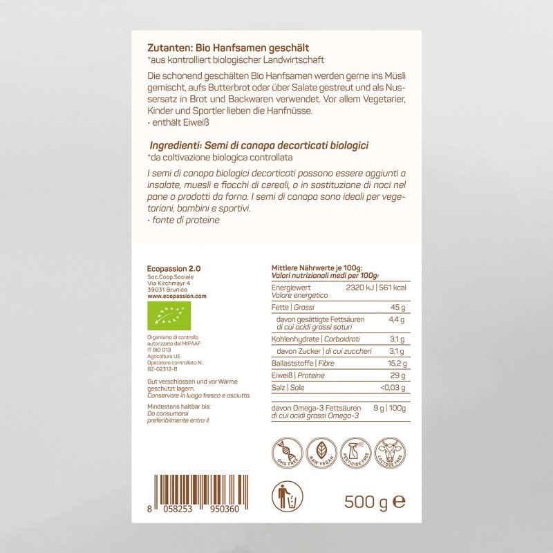 Home Alimenti Semi e Farine SEMI DI CANAPA decorticati – Ecopassion 500gr