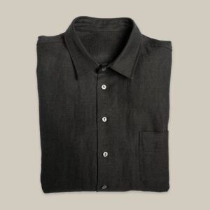 Robust shirt made entirely of finely crafted wet-spun hemp Dyed thread by thread. Buttons made of natural zamak with minimal environmental